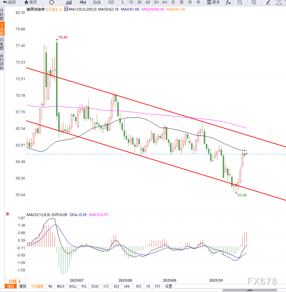 尽管如此,市场并未完全摆脱风险。当前背景仍存在库存压力偏高、 OPEC+产量上升与终端需求恢复节奏偏慢等制约因素。因此,中期油价虽改善但依旧处于情绪敏感区间,涨幅可能受制于价格顶部抛压。