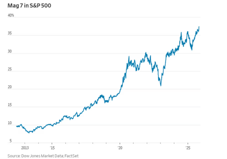 今日的涨势几乎完全依赖科技板块。 “华丽七雄”大科技公司周二再次成为市场焦点。如今这些科技巨头合计占据标普500指数创纪录的37.4%.