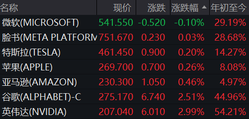 科技股成为市场焦点,大型科技股多数上涨。英伟达股价涨近3%,总市值首次站稳5万亿美元上方,成为全球首家突破这一关口的上市公司。苹果和微软市值也均超4万亿美元,推动美股首次同时出现三家市值达此规模的公司。谷歌、亚马逊、Meta等权重股跟涨,费城半导体指数刷新高点。