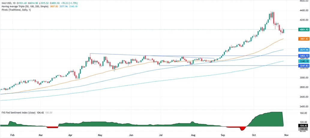 FXStreet分析师Christian Borjon Valencia指出,黄金的技术前景依然乐观,随着金价收于4000美元/盎司上方,黄金买家维持看涨势头,金价有望测试20日简单移动平均线(SMA)4079美元/盎司。相对强弱指数(RSI)显示买家力量正在恢复,表明金价短期内可能进一步上涨。