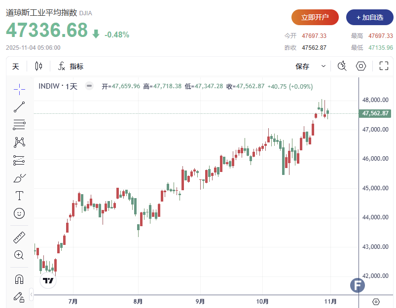 道琼斯指数收盘下跌226.19点,跌幅0.48%,报47336.68点;标普500指数收盘上涨11.77点,涨幅0.17%,报6851.97点;纳斯达克综合指数收盘上涨109.77点,涨幅0.46%,报23834.72点。