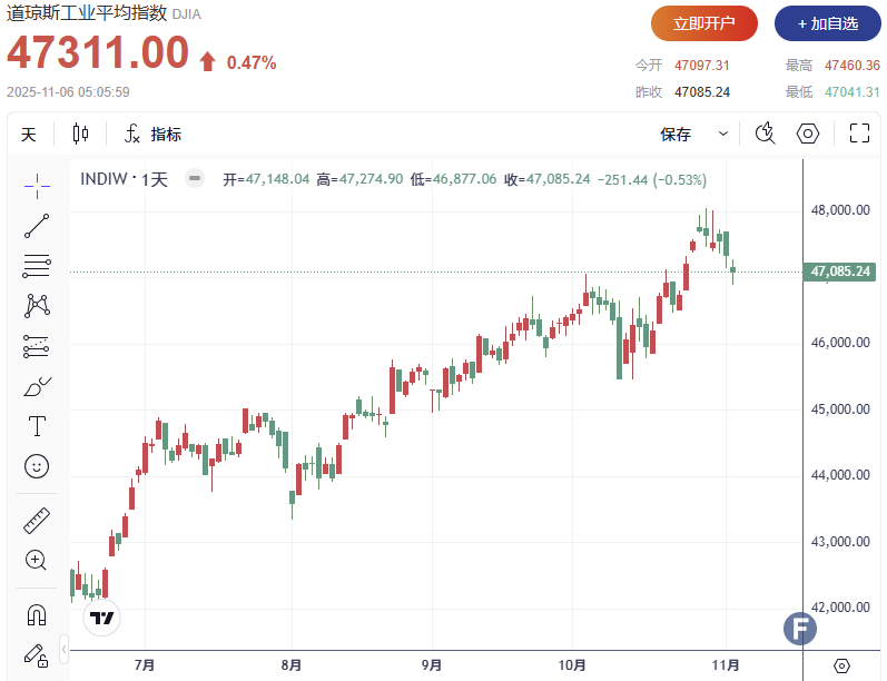 道琼斯指数收盘上涨225.76点,涨幅0.47%,报47311.00点;标普500指数收盘上涨24.74点,涨幅0.36%,报6796.29点;纳斯达克综合指数收盘上涨151.16点,涨幅0.65%,报23499.80点。