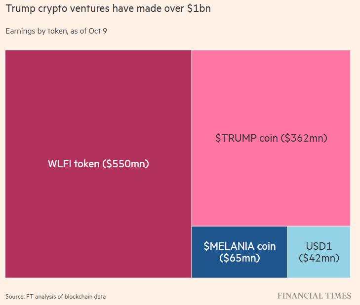 此外,据《金融时报》调查,特朗普及其家族正建立庞大的加密资产帝国,过去一年已获税前利润逾10亿美元。