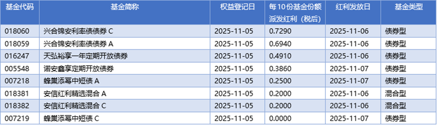 四、11月05日基金分红一览
