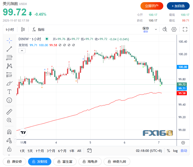 (美元指数1小时走势图,来源:FX168)