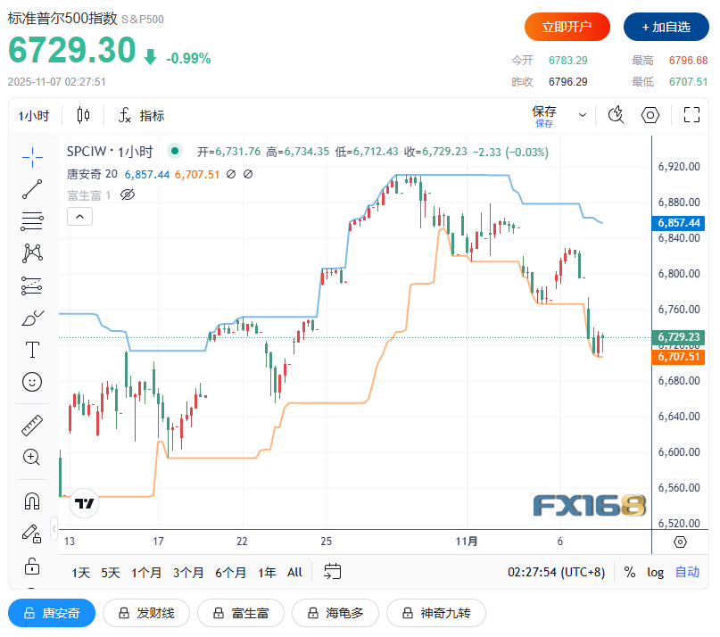 (标普500指数1小时走势图,来源:FX168)