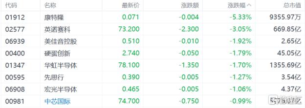 半导体股普跌,英诺赛科跌超3%,华虹半导体、先思行、宏观半导体跌超1%,中芯国际收跌。不过信证券指出,三大存储原厂暂停DDR5报价,DDR5现货价格飙升25%,季度涨幅或达30%-50%,存储芯片涨价叠加长鑫存储大幅扩产以及HBM3产品的交付有望进一步带动上游材料端需求持续增长,同时,在外部限制或将加码的背景下,国内将加快科技自立自强步伐,国产创新与自主可控进程或将进一步加速,拉动半导体材料增量需求。