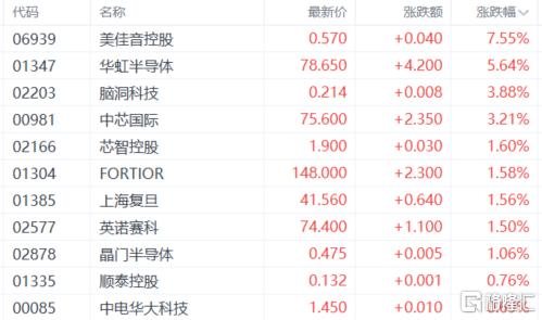 半导体、芯片股涨幅居前,华虹半导体涨超5%,中芯国际、中兴通讯、上海复旦、地平线机器人等跟涨。