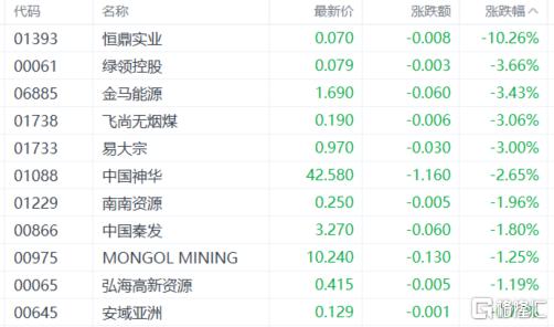 煤炭股下挫,易大宗、中国神华、南南资源、中国秦发等跟跌。