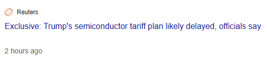 提高进口半导体的税收可能会增加由其驱动的各种小工具的消费者成本,从冰箱到智能手机等都可能受到影响。路透社 9 月份报道称,特朗普政府正在考虑一项计划,该计划还将根据外国电子设备中芯片的数量来对其征税。特朗普上周取消了对 200 多种食品的关税,但他同时也表示,他的进口税对通胀没有显著贡献。