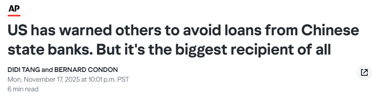 FX168财经报社(北美)讯 多年来,华盛顿一直警告各国警惕中国国有银行的贷款陷阱,然而威廉玛丽学院 (College of William & Mary)AidData 研究室发布的最新报告揭示了一个极具讽刺意味的真相:美国本身才是这些资金的最大接收国。而这背后的安全和技术隐患尚未被完全理解。