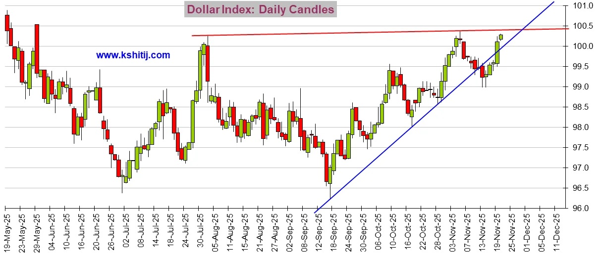 FX168财经报社(亚太)讯 周四(11月20日)亚市盘中,美元指数维持坚挺走势,目前位于100.25附近;现货黄金位于4080美元/盎司左右。本交易日,投资者将聚焦美国非农报告,预计将引发市场重大行情。Kshitij咨询服务团队(Kshitij Consultancy Service)周四最新撰文,对黄金、美元指数、欧元/美元、欧元/日元、美元/日元、澳元/美元、英镑/美元以及美元/人民币后市走势进行前瞻分析。
