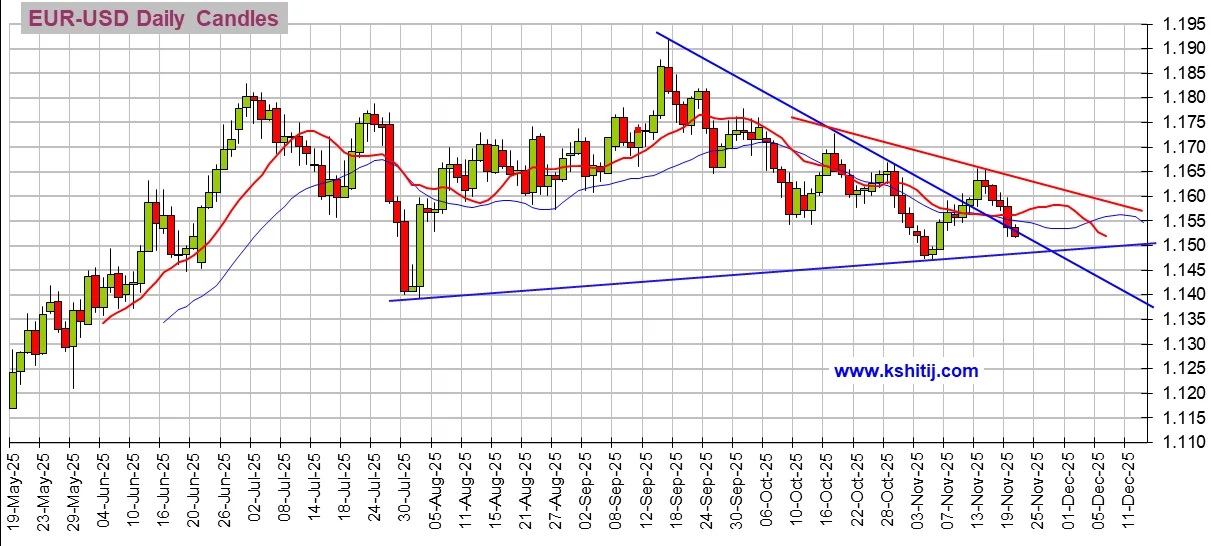 由于美元走强,欧元/美元跌破1.155,打破了此前对汇价升向1.165的预期。若跌破1.15,则可能推动汇价进一步跌向1.145-1.140。