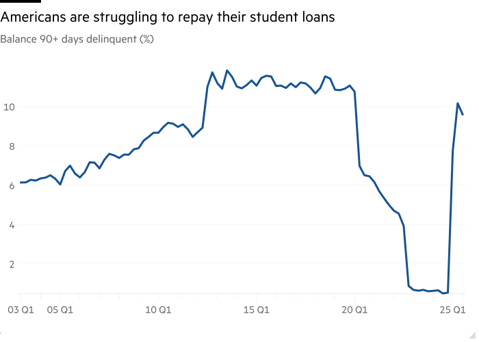 FX168财经报社(北美)讯 随着拜登政府疫情期间实施的学生贷款还款假期正式结束,美国学生贷款市场风险迅速暴露。官方数据显示,今年已有超过900万名美国学生贷款借款人至少错过一次还款,拖欠率在短时间内大幅攀升,不仅显著冲击借款人信用评分,也加剧了市场对就业降温与年轻群体财务承压的担忧。