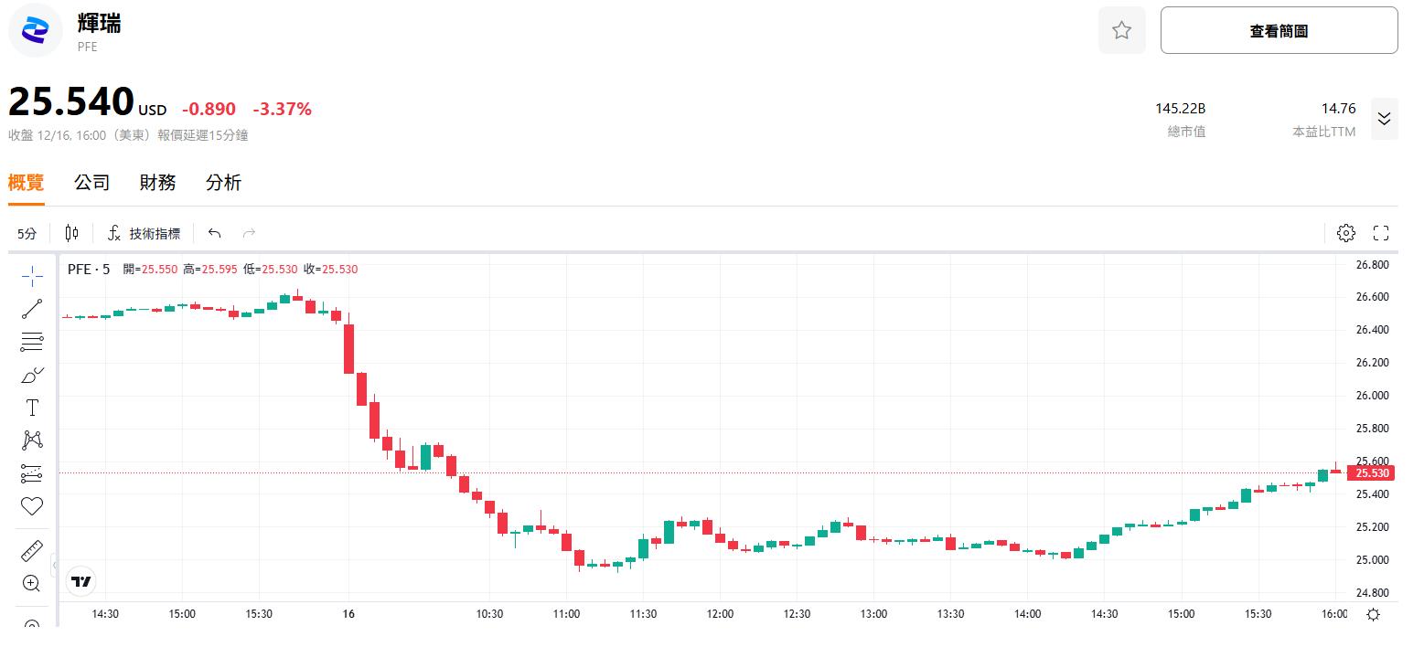辉瑞发布2026年业绩指引:辉瑞公布2026年全年财务预期,预计营收区间为595-625亿美元,调整后每股收益2.80-3.00美元。股价跌超3%。