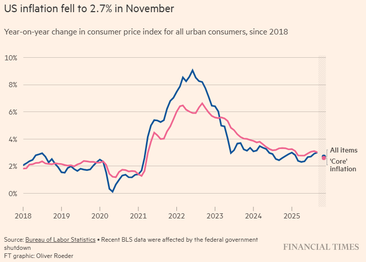 他指出,尽管从现在到美联储于明年1月作出下一次利率决议之前,仍有大量经济数据需要公布,但这份CPI报告——如果后续公布的各项分项数据与当前整体走势一致——无疑会促使市场重新评估并讨论2026年进一步降息的可能性。