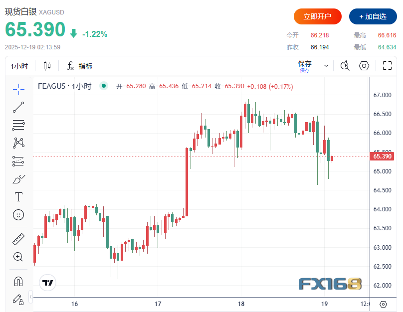 白银自高位回落 贵金属涨势向铂钯扩散与此同时,现货白银下跌1.2%,报65.839美元/盎司,前一个交易日曾触及 66.88美元/盎司 的历史高位。