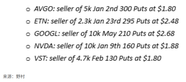 这些交易表现出市场愿意出售与人工智能相关的代表性股票,博通、伊顿( ETN)、Alphabet、英伟达和Vistra的下行期权。