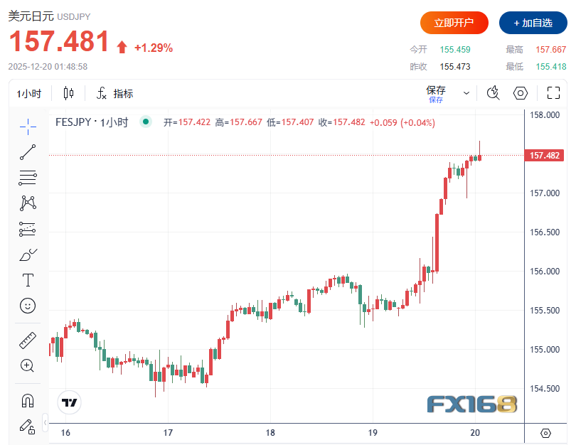 市场已开始重新评估官方干预的可能性。自11月美元兑日元突破155关口后,干预风险便持续升温。东京当局上一次入市干预是在2024年7月,当时美元兑日元触及161.96,为上世纪80年代中期以来最高。