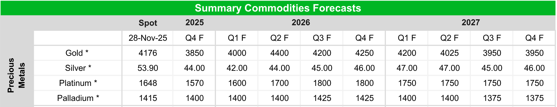 铂族金属:2026年的“黑马”?与白银不同,TD Securities对铂金和钯金的前景极为乐观,并将其列为2026年首选大宗商品,目标价较市场共识高出约20%。