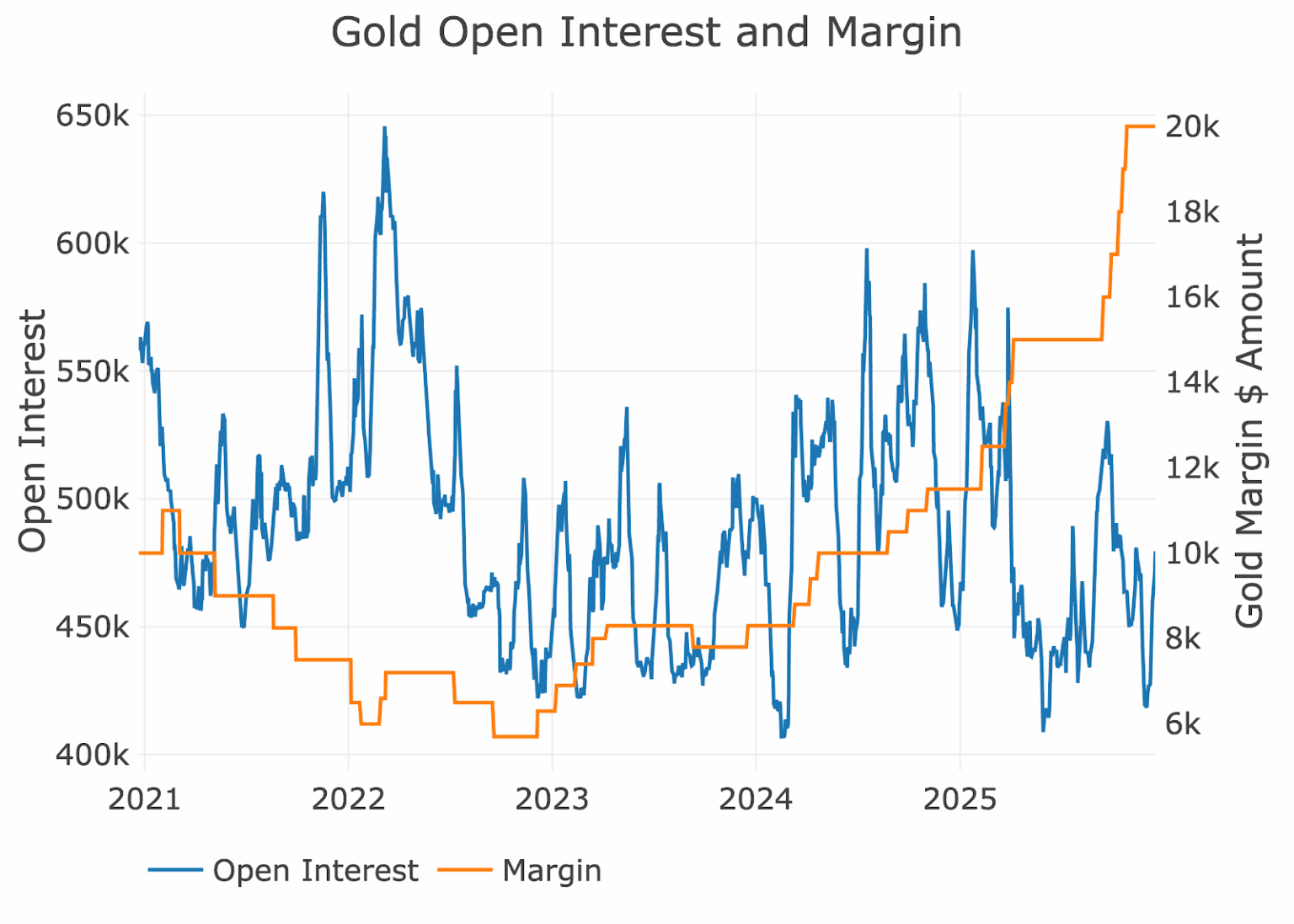 CME已将黄金与白银期货保证金上调至历史高位,理论上这应抑制投机行为。然而,保证金上调并未对价格形成实质性压制,反而可能限制了空头操作空间。