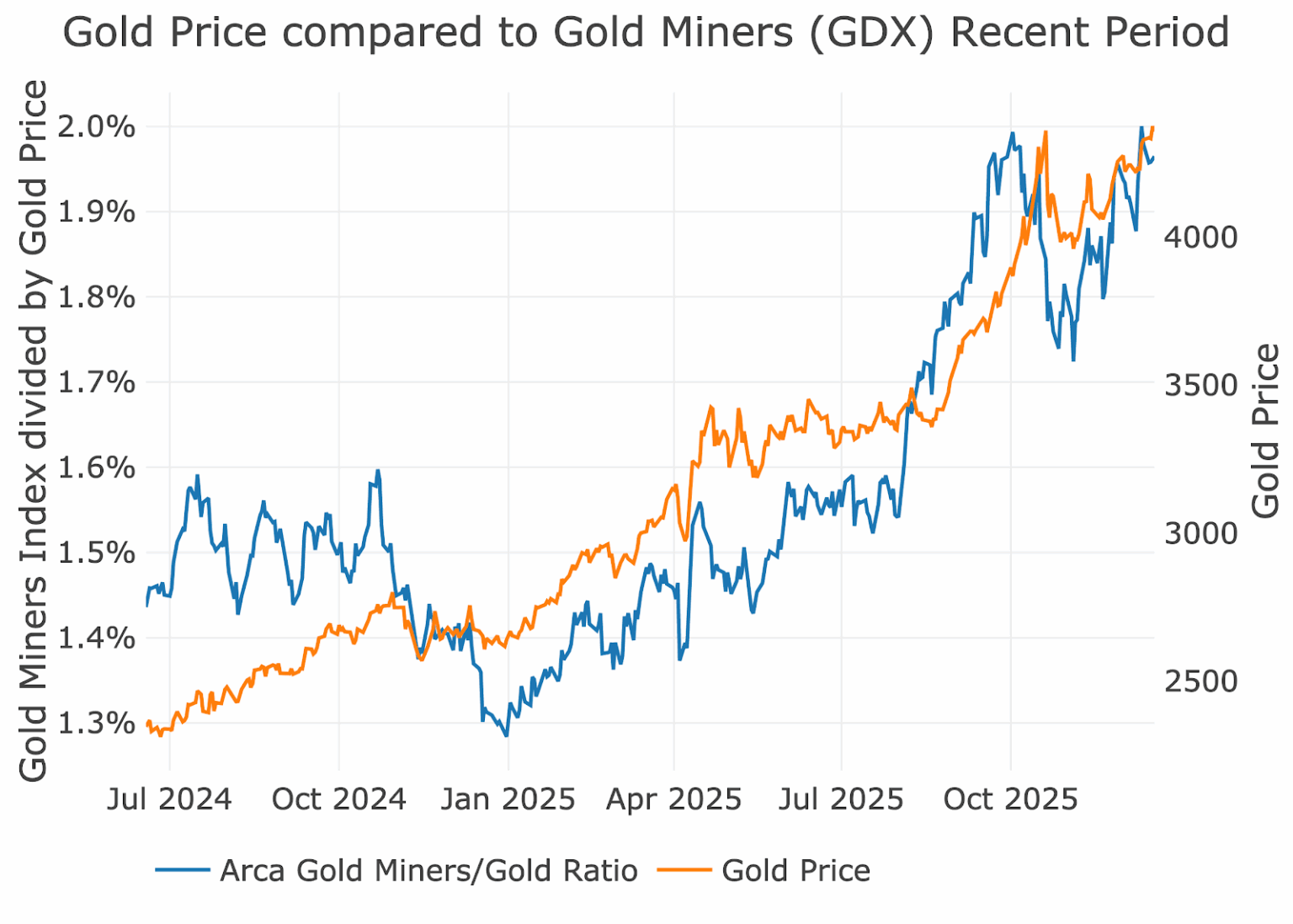金矿股的相对表现为观察长期资金情绪的重要窗口。尽管金价大幅波动,但矿业股此前长期明显跑输黄金。近期,GDX相对黄金的表现开始改善,显示权益投资者对黄金牛市的信心正在逐步修复。