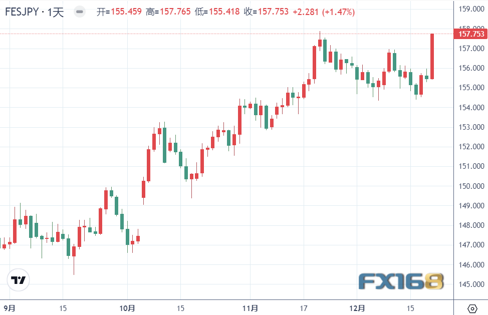 美元兑日元一度升至157.67,创四周新高,录得自10月初以来的最大单日涨幅。欧元兑日元升至184.71,创历史新高;瑞士法郎兑日元触及197.23的纪录高位。英镑一度上涨1.36%,至210.96日元,为2008年以来最高水平。