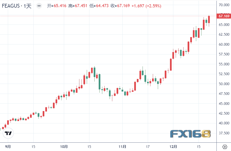 在上周持续攀升之后,本周受市场对美联储降息预期升温提振,黄金本周录得上涨,最高触及4374美元,距离历史高位仅一步之遥,当周涨幅接近40美元。与此同时,在投资需求旺盛及供应趋紧的支撑下,白银价格疯狂暴涨,多次刷新历史新高,最高触及67.46美元,当周涨幅超过5美元,达到惊人的8.3%。今年以来,白银价格累计上涨132%,显著跑赢黄金约65%的涨幅,主要受强劲的投资需求以及供应受限的共同推动。