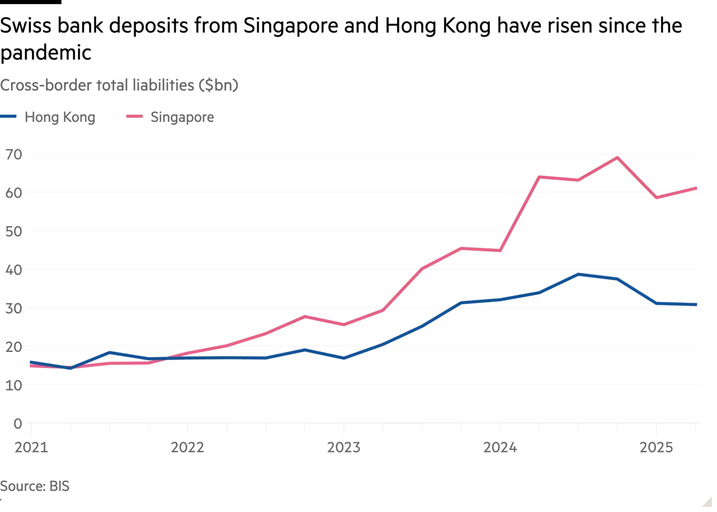 国际清算银行(BIS)与瑞士国家银行(SNB)的数据显示,来自香港和新加坡居民的瑞士存款在近年来显著增长,这被认为是亚洲财富向瑞士流入加速的重要信号之一。