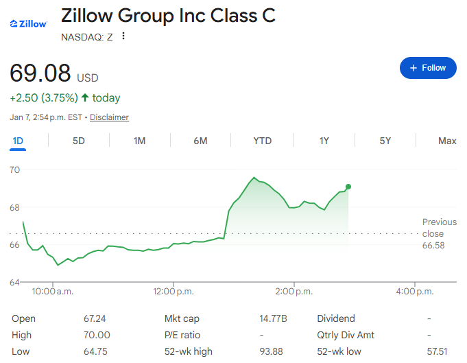 主要房屋销售商的股价则应声上涨,Zillow股价上涨4.5%,至69.58美元;Compass股价上涨14%,至12.32美元;Remax股价上涨1.3%,至7.83美元;Rocket Companies股价上涨2.2%,至21.67美元;Anywhere Real Estate股价上涨22%,至17.64美元。
