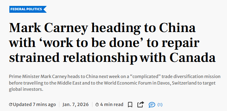 报道指出,随着卡尼在去年9月联合国大会期间与李强会晤、并在11月于韩国举行的亚太领导人峰会与习近平会面,双方重启接触的节奏明显加快,也为此次新年访华行程奠定基础。