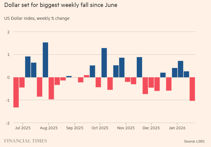 格陵兰危机重新引发人们对美国资产的政治风险担忧。长期以来,美国资产被视为全球资本的避风港,而去年美元大跌9%,是自2017年以来最严重的一次下滑。