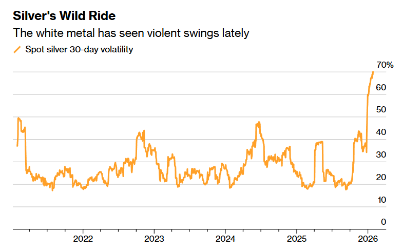 报道指出,全球动荡与所谓“贬值交易”是支撑贵金属大涨的重要宏观背景:在该交易逻辑下,投资者从主权债券与法币资产撤出,转向黄金、白银等硬资产以对冲风险。但与黄金相比,白银上涨更猛、更快,且盘中波动剧烈,反映出市场在投机资金涌入下出现“拥挤交易”。