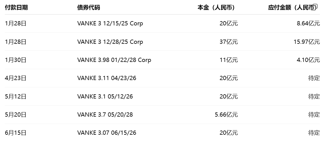 万科债券付款截止日期