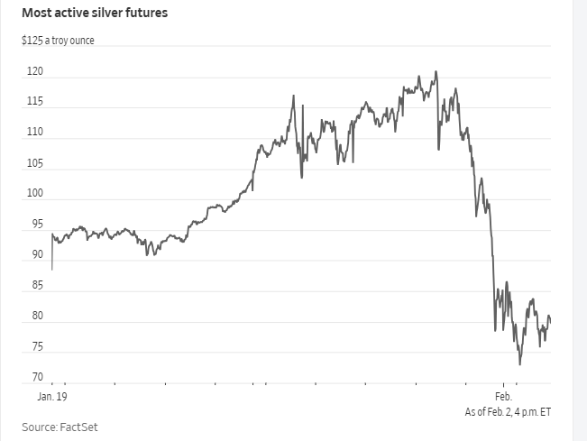 “去年追涨比特币的投资者转而涌入贵金属,寻找下一波高回报,现在这些交易正在解体,”他说,“这是一个‘杠铃型市场’——极端方向出现剧烈波动——而多元化的股票投资组合仍保持稳健,这说明这更多是关于仓位和市场情绪的变化,而非市场整体远离风险。