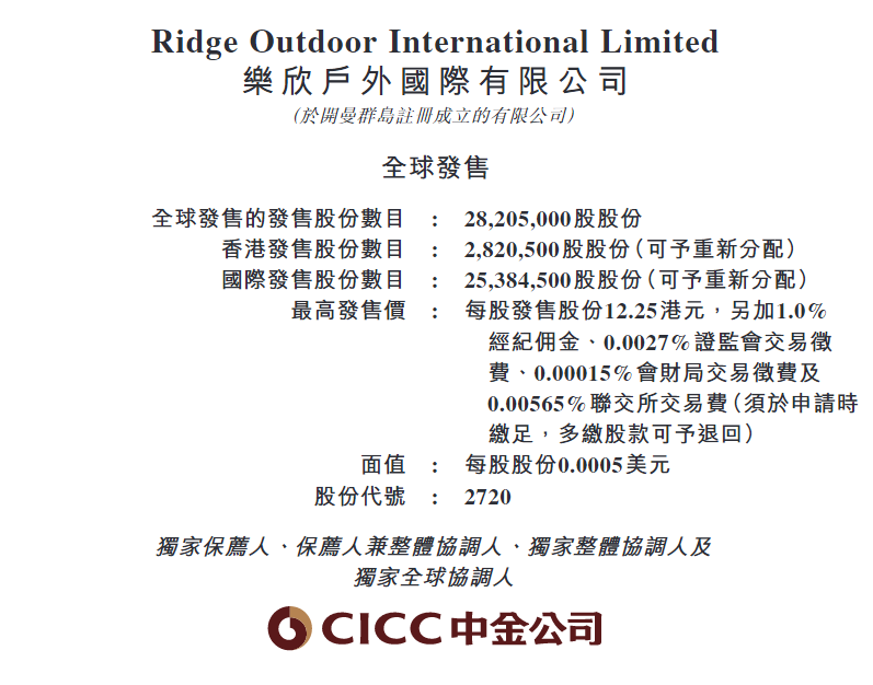 招股详情:募资强化全球布局与产能升级乐欣户外于2026年1月31日至2月5日进行招股,招股价区间为每股11.25至12.25港元,每手500股,入场费约6,186.78港元。本次全球发售2,820万股,其中公开发行282万股,预计于2026年2月10日在港交所主板上市。按最高发售价计,预计募集资金净额约2.72亿港元。