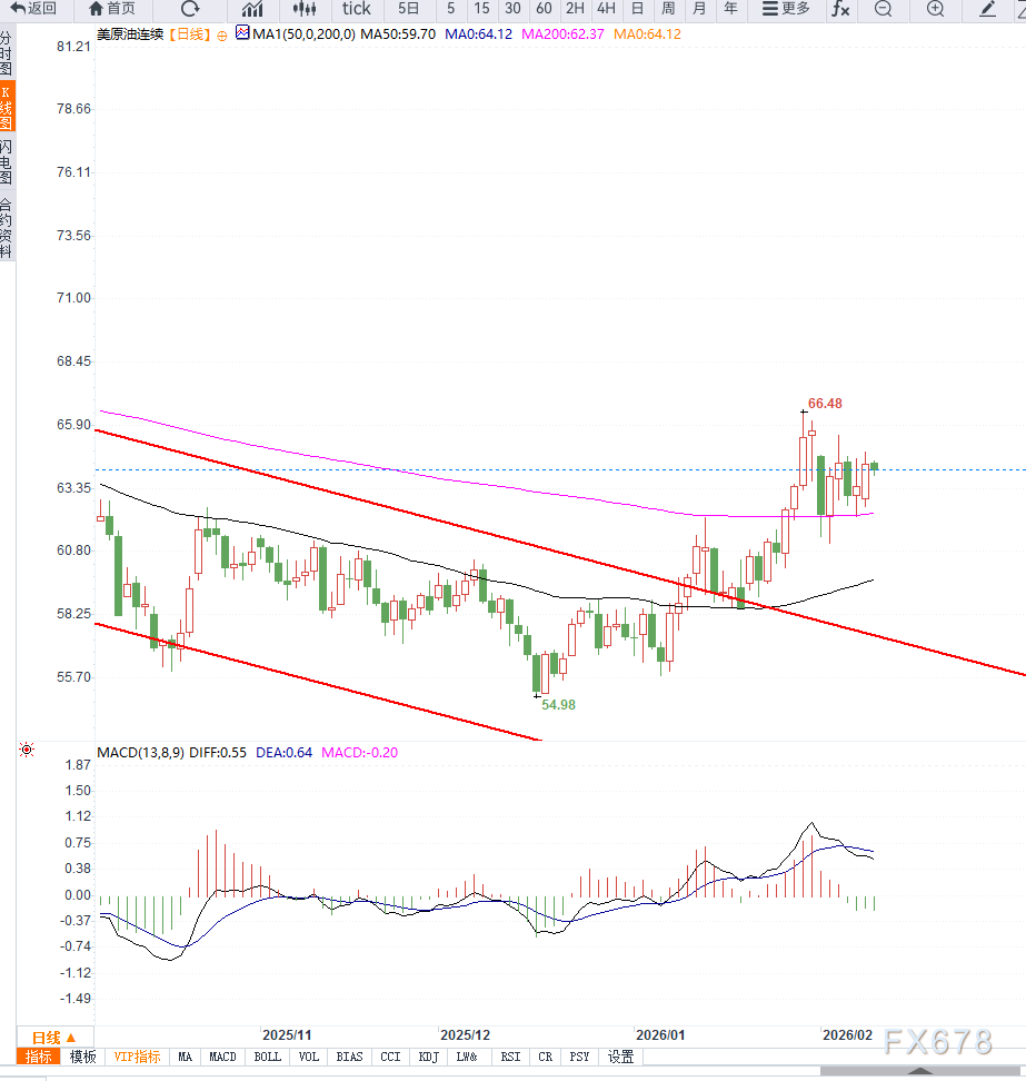 原油(WTI)价格在供应宽松的背景下维持高位震荡,交投于64