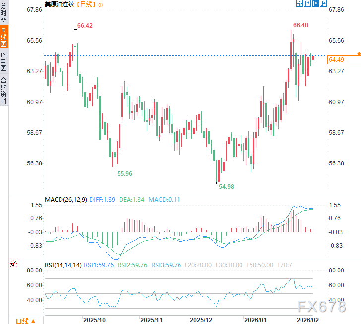 周三亚市时段,受美伊持续地缘政治风险影响, 美原油价格震荡走强,现交投于每桶64.50 美元附近,日内涨幅约0.8%,此前一个交易日油价震荡走低,收跌0.34%。