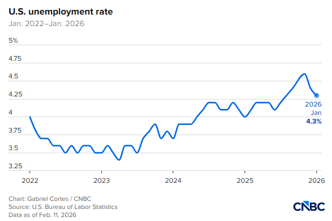 太意外!美国1月非农新增13万创一年多新高 失业率降至4.3% 特朗普再度呼吁降息