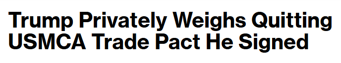 重磅!特朗普被曝私下考虑退出美墨加协定 对加关税遭国会“反制”表决 油价应声上扬