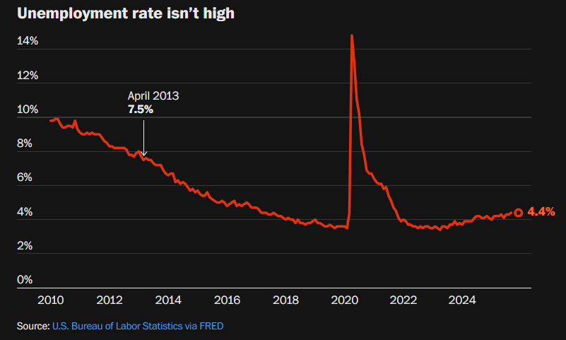 经济学家艾伦·布林德尔最近写道:“2025年全年净新增就业仅为58.4万个,而2024年大约是200万个。”