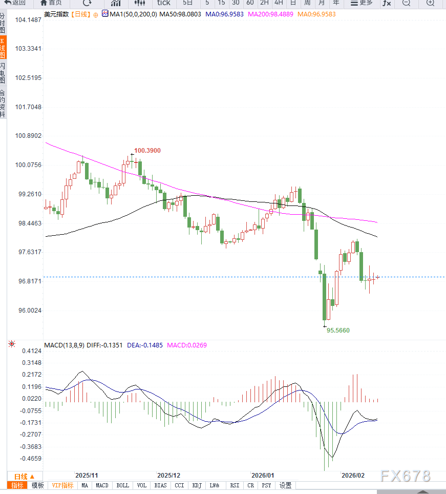 美元指数在日线图上仍维持震荡偏强格局,价格稳守97关口,短期均线呈多头排列,显示上行动能仍在。关键支撑位在96.80和96.50,跌破则可能测试96整数关口。上方阻力位关注97.50和98.00,突破可打开进一步上行空间。