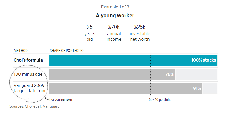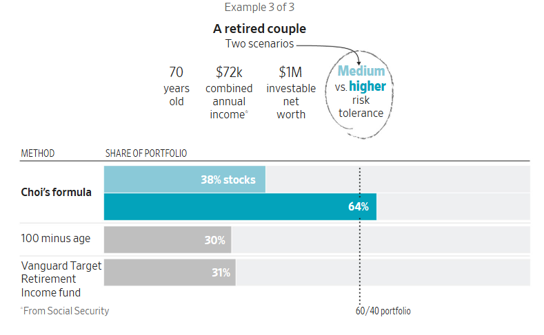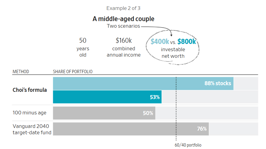 在许多情境下,这个公式建议的投资组合,比其他流行的指导原则更为激进,股票占比更高。