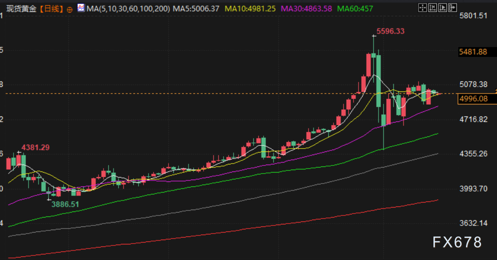 在 大宗商品市场,投资者情绪持续谨慎, 贵金属与能源品种走势分化。 黄金价格承压下行,周一 现货黄金一度跌至每盎司4965.06美元。近期金市波动加剧,主要受部分投资者被迫退出杠杆头寸的影响,市场流动性一度收紧 白银同样表现疲软。