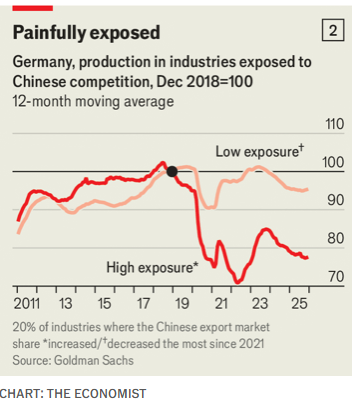 数十年来专注于同一工业领域的家族企业中小企业,正看到自身商业模式被颠覆。许多德国人称之为“第二次中国冲击”,加剧了对工业核心被掏空的担忧。