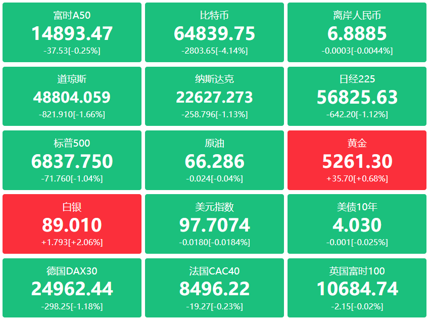 欧洲主要股指多数收跌,欧洲斯托克(Eurostoxx)50指数跌0.24%,英国富时100指数跌0.03%,法国CAC40指数跌0.22%,德国DAX30指数跌1.01%,富时意大利MIB指数涨0.49%。