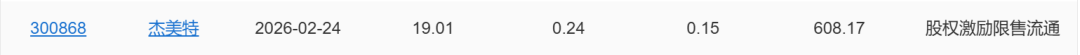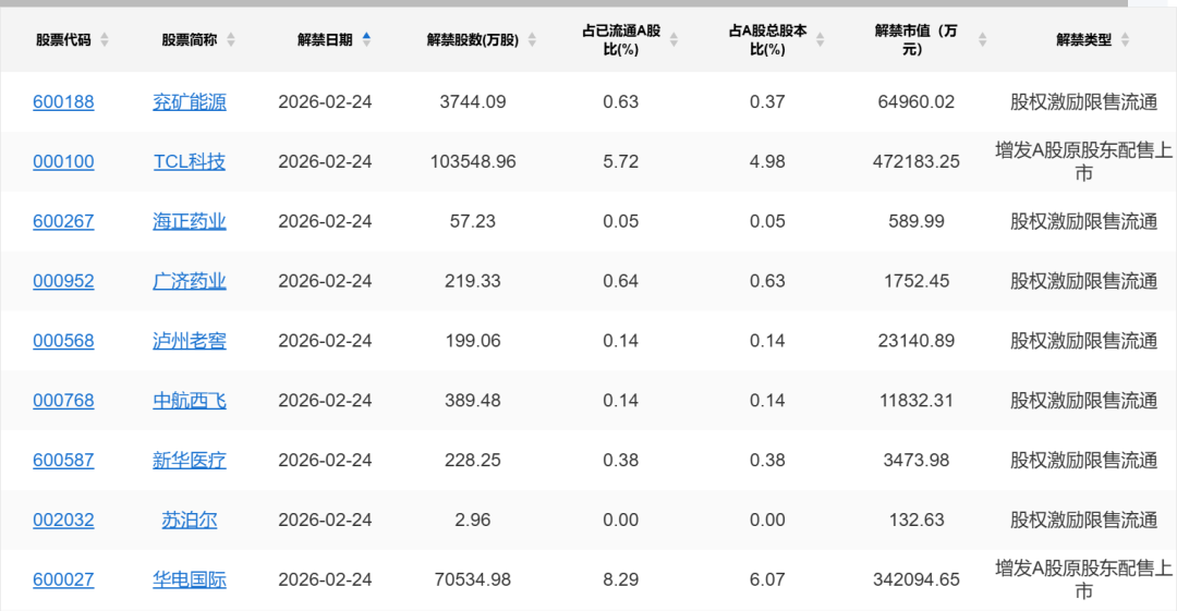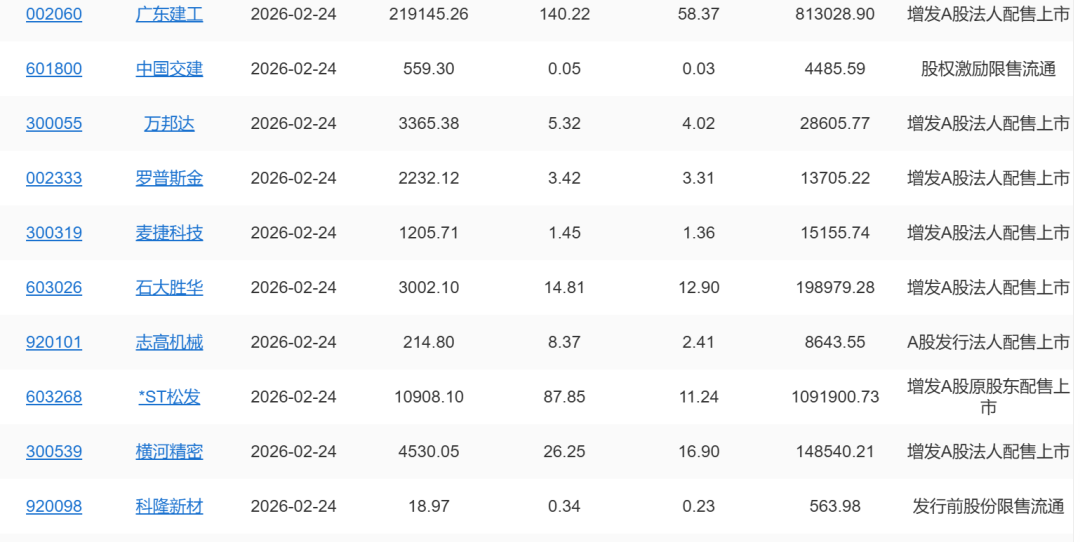 【限售解禁】