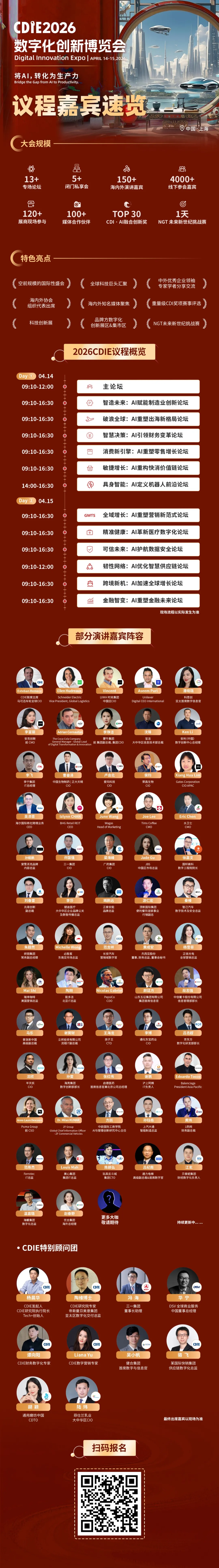 本次CDIE2026数字化创新博览会已成功邀约数百位全球顶尖企业数字化领袖,他们将齐聚上海,分享前沿洞察。