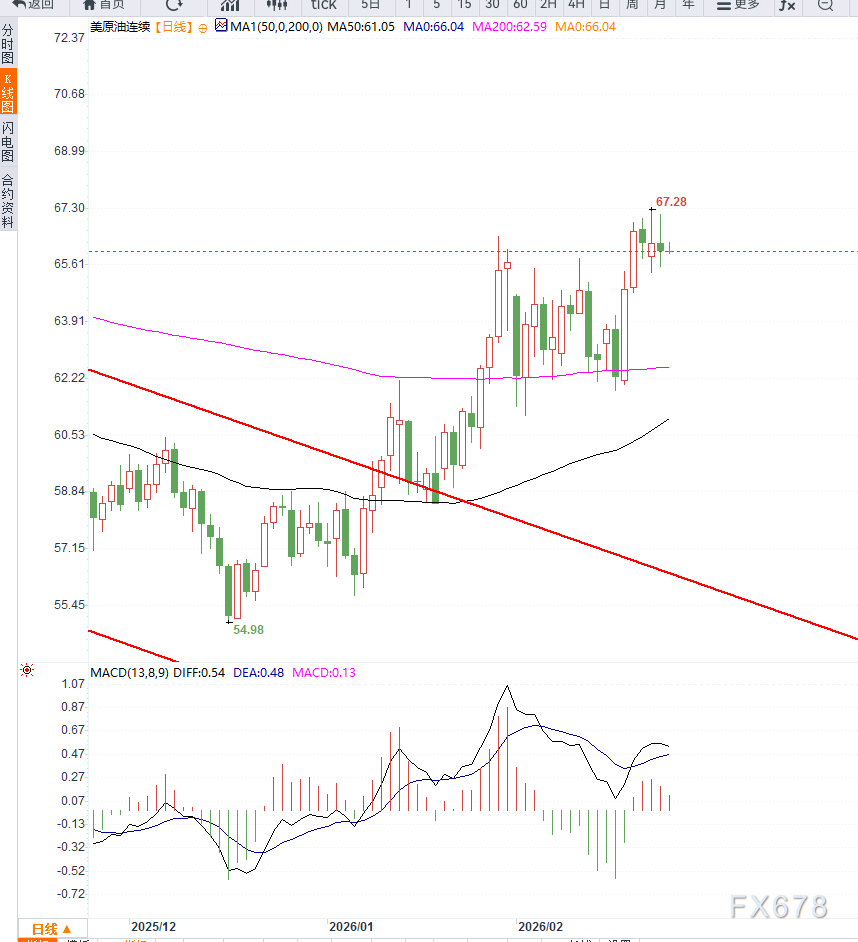 若谈判继续释放积极信号,油价可能进一步测试63美元附近区域;若外交进程受阻或局势再度紧张,则油价有望迅速收复67美元并向70美元发起挑战。