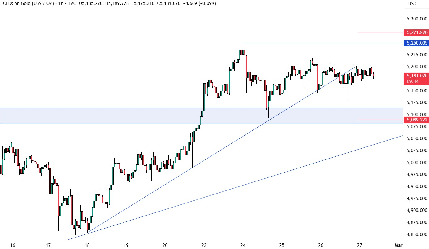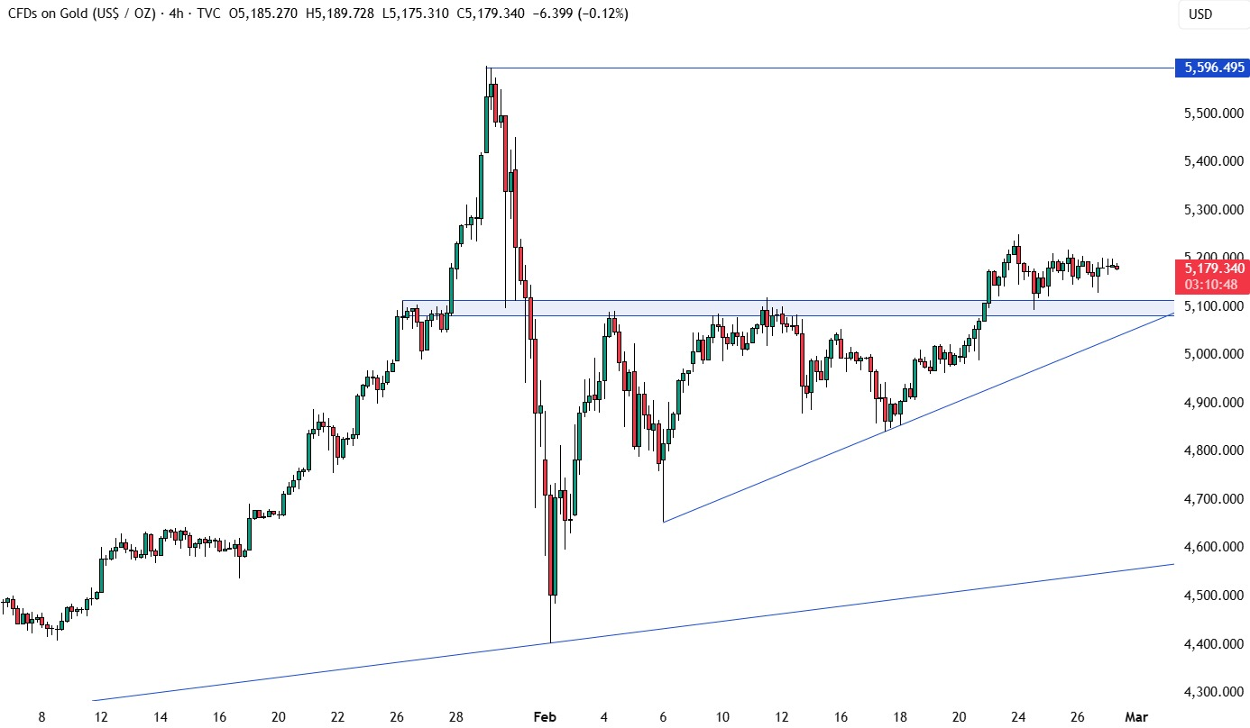 在4小时图上可以看到,价格正在关键的5100区域上方盘整,交易员在等待新的催化剂来选择方向。